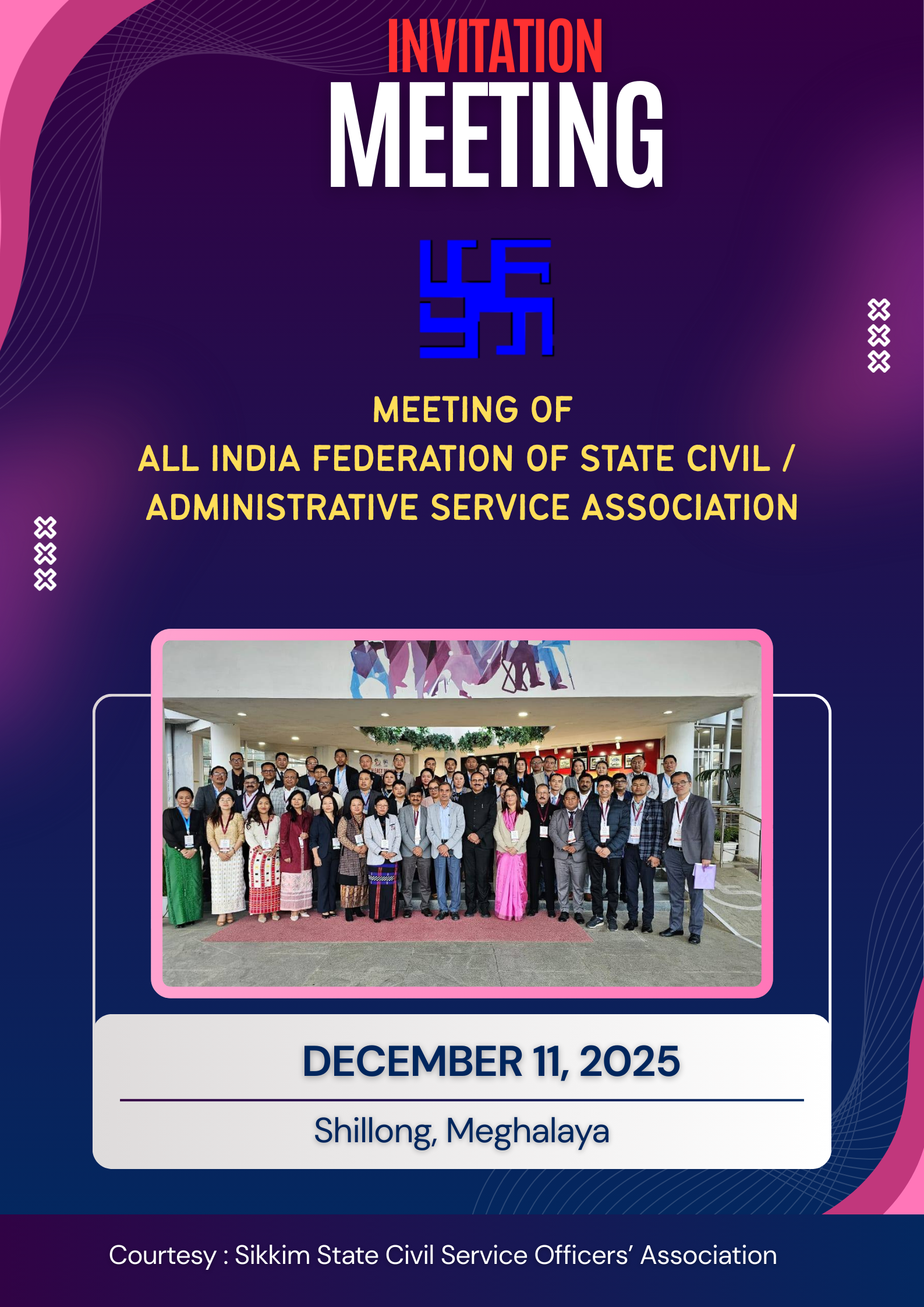 The meeting will be attended by Mr. Dushyant Pariyar, President-SSCSOA and Secretary to Governent of Sikkim (Panchayati Raj) ; Smt. Annapurna Alley, Finance Secretary(AIF) and Secretary to GoS(IPR), Mr.Manoj Rai,Vice President-SSCSOA and Special Secretary ; Mr.Suresh Rai, Joint Secretary-II and ADM(Gyalshing District)